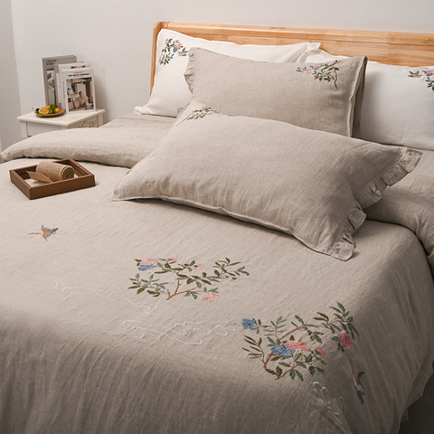 צרפתית שטוף פשתן טהור ארבע חתיכות יוקרה בסגנון הקיץ בסגנון קיץ מוצק מצעים 200tc הביתה שינה עירום חד פעמי